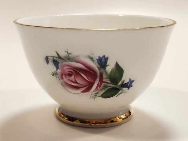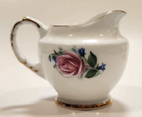 Vintage Delphine Red Rose Gold Trim Bone China Sugar Bowl and Creamer Pitcher Jug Made in England