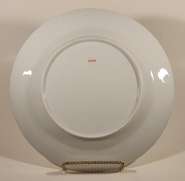 Vintage Japan Yellow Pink Trimmed Roses 10 1/4" Gold Rimmed Dinner Plate
