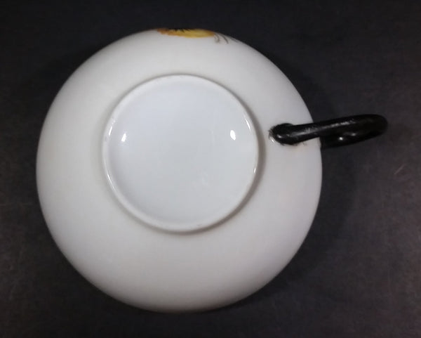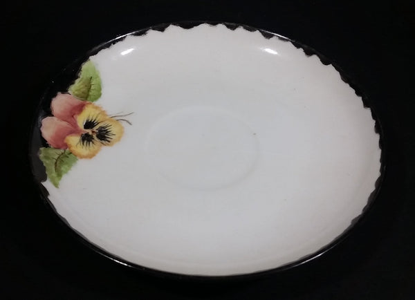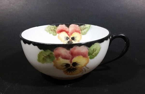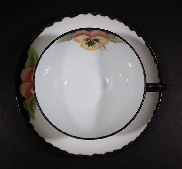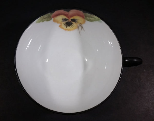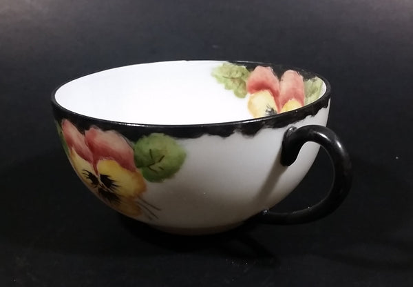 Antique Unmarked Black Trim Yellow Pansy Tea Cup & Saucer