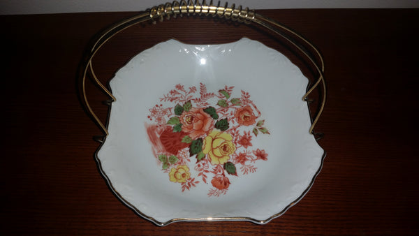 Collectible Floral Pattern Candy Dish with Metal Holder