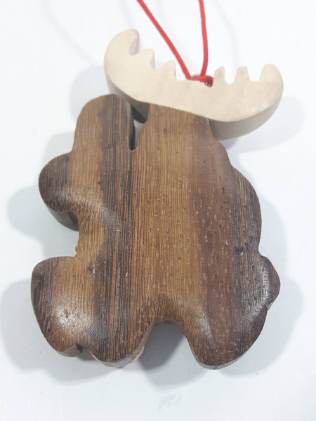 Moose Holding a Canadian Flag Snowboard Handmade Natural Wood Hanging Ornament