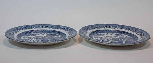 1980s Churchill England Blue Willow Pattern 8" Side Salad Luncheon Plates Set of 2