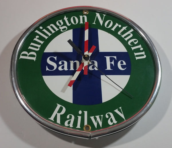 BNSF Burlington Northern Railway Sante Fe 9" Round Green Blue White Metal Wall Clock with Railway Crossing Hands