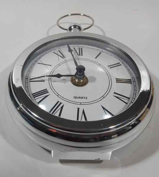 Quartz Pocket Watch Shaped Large 5 3/4" Tall Chrome Wall Clock
