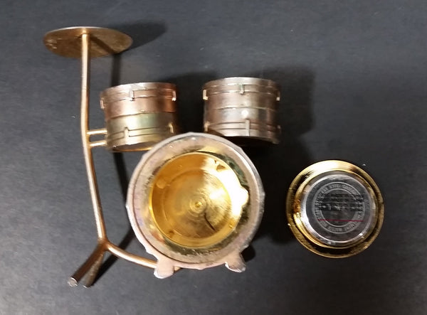 Small Miniature Novelty Drum Set Alpine Quartz Desk Clock Ornament - Needs Battery - Some Wear