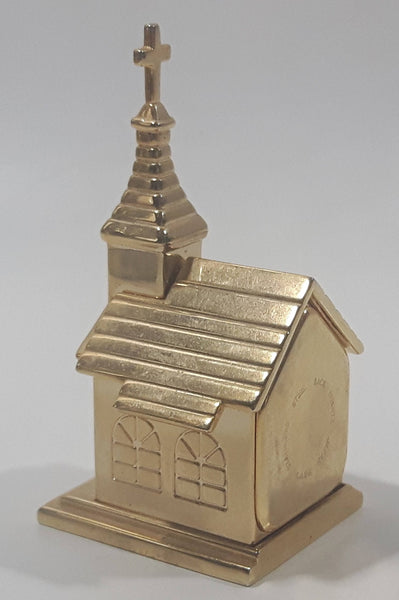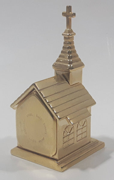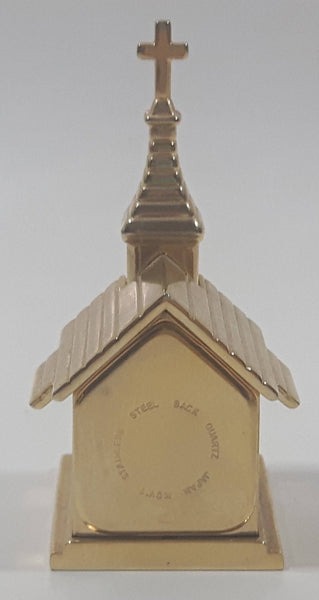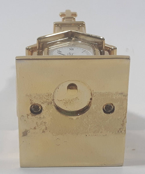 ST Quartz Japan Movement Miniature Brass Tone Church Shaped Clock 2 3/4" Tall