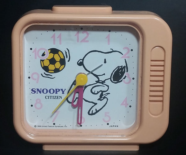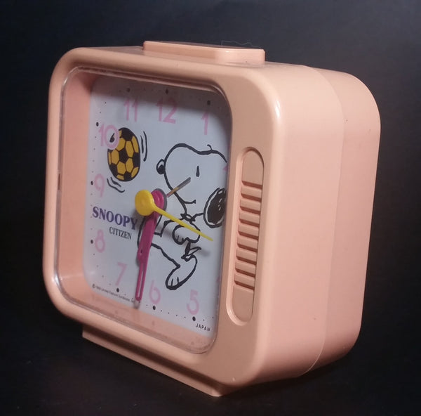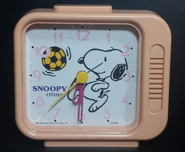 Vintage 1958 Citizen United Feature Syndicate Snoopy Playing Soccer Pink Alarm Clock Collectible