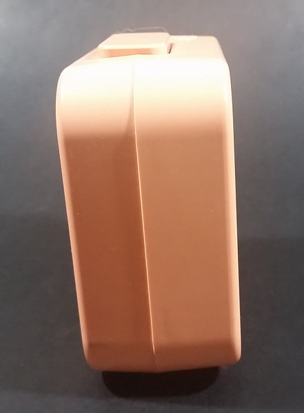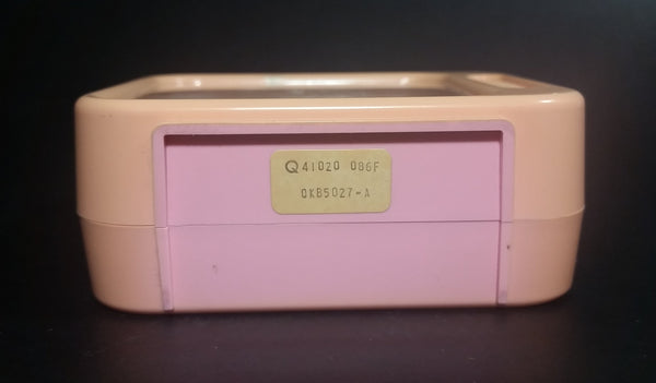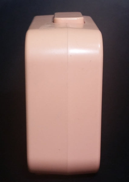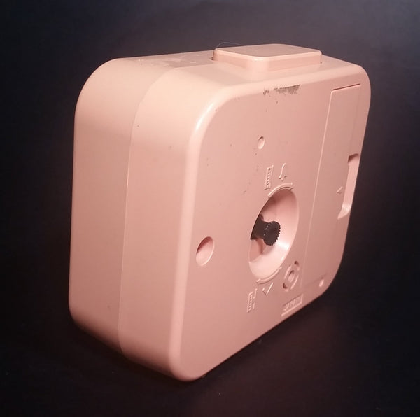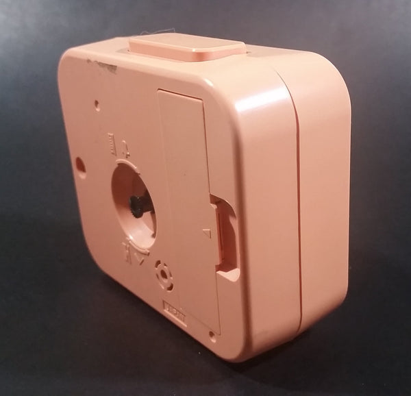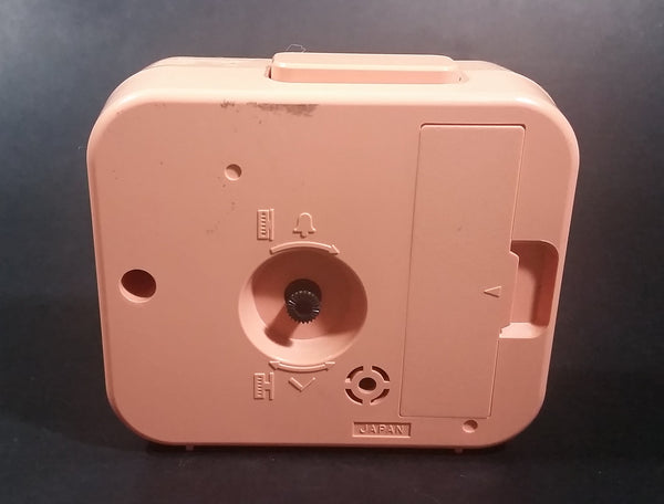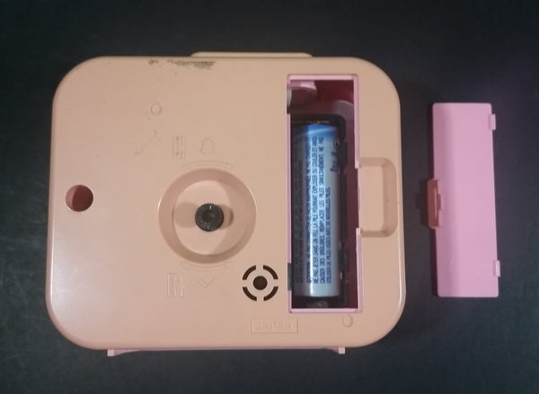 Has yellowing to the original pink color. Both the clock and the alarm have been tested and are in working condition. Battery operated with 1 AA battery.