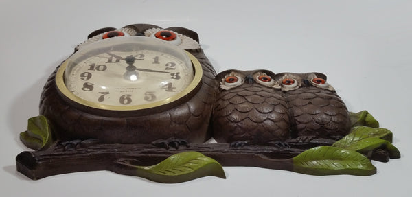 Vintage 1972 Burwood Products New Haven Owl and Baby Owls Clock