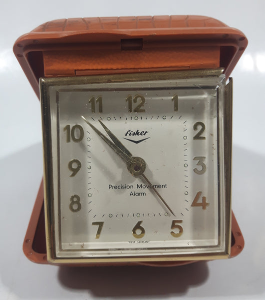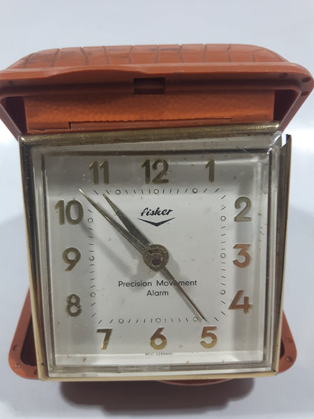 Vintage Fisher Precision Movement Brown Hard Plastic Cased Travel Alarm Clock Made in West Germany