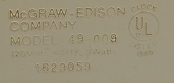Vintage Ingraham Nightstand Alarm Clock Model 49-009 Plug In Electric - McGraw-Edison Company - Needs repair
