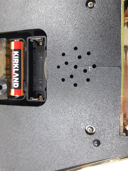 Good used condition. There is supposed to be sound based on a second battery and a speaker at the bottom but it is not working. The clock itself works and keeps time. Hard to find this version. View photos.