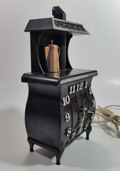 Vintage Spartus Antique Style Black Pot Belly Stove Shaped Electric Plugin Clock