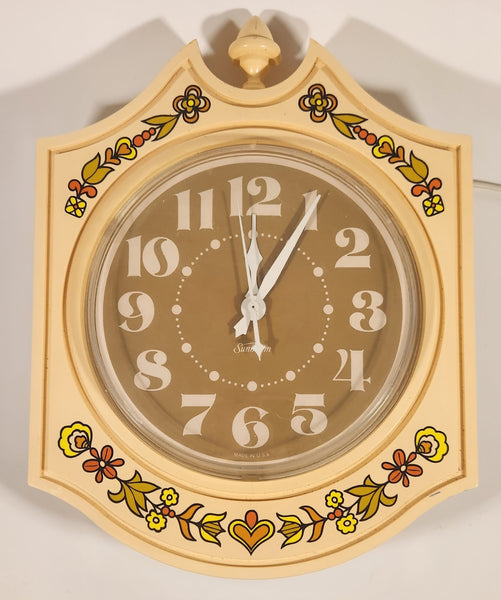 Vintage Sunbeam Flower Themed Plastic Electric Wall Clock Made in USA