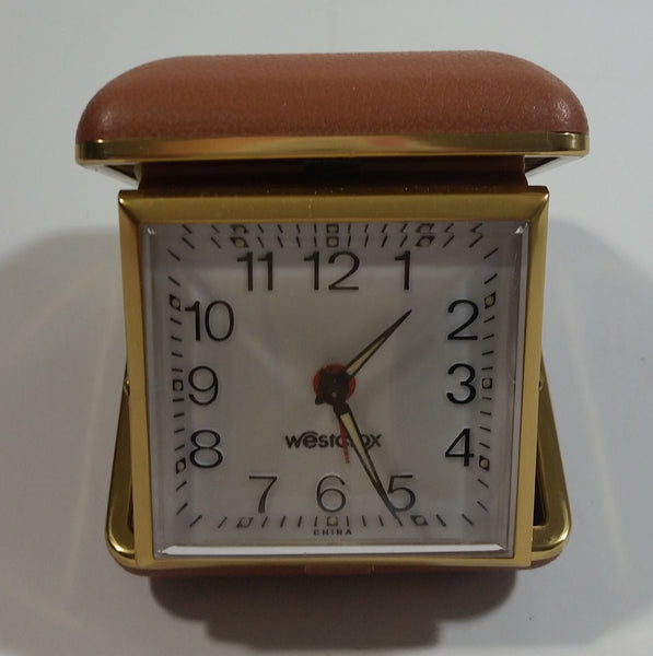 Vintage Westclox 422400 Travino Tan Cased Keywound Travel Alarm Clock