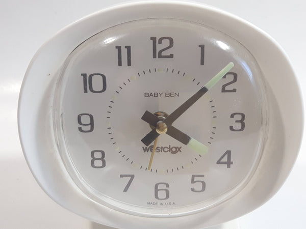 Vintage Westclox Baby Ben Glow in the Dark Hands White Windup Alarm Clock Made in U.S.A.