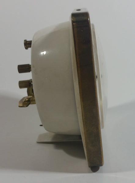 Vintage Westclox Mother of Pearl Bakelite Style Brass Framed Windup Bedside Travel Alarm Clock Made in Canada
