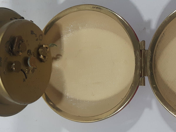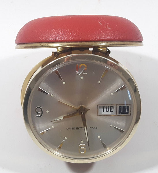 Vintage Westclox Red Cased Round Calendar Date and Time Windup Travel Alarm Clock