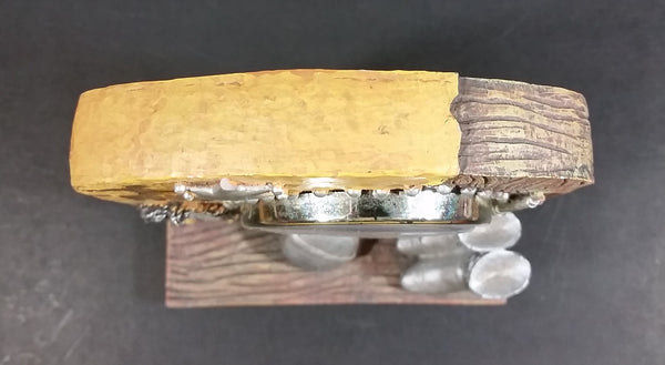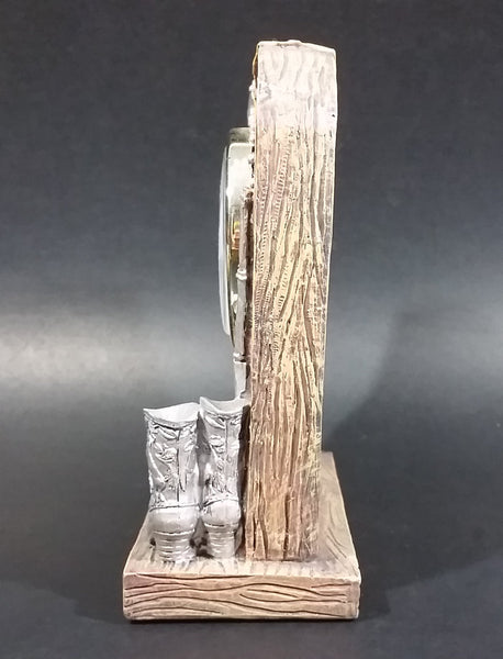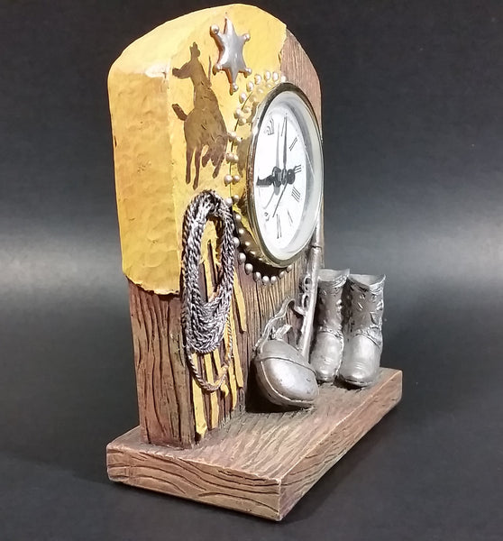 Western Rodeo Cowboy Quartz Clock w/ Leather Overlay, A Star, Boots, Canteen, Gun, and Ropes