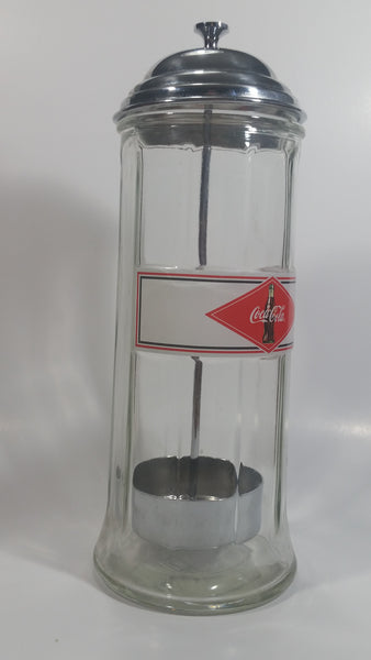 Tablecraft Coca-Cola Glass and Metal 11" Tall Straw Holder Beverage Collectible
