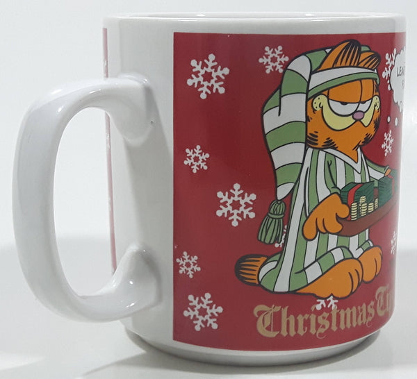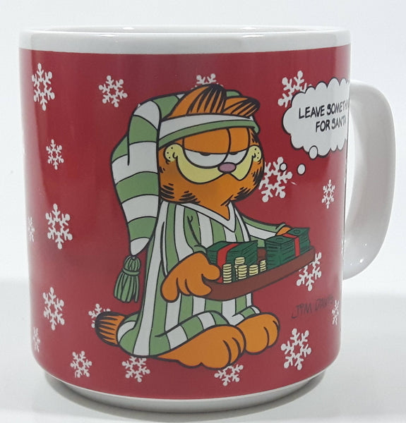 1978 Enesco Jim Davis Garfield Christmas Tip No. 1 "Leave Something For Santa" 3 1/2" Tall Ceramic Coffee Mug Cup