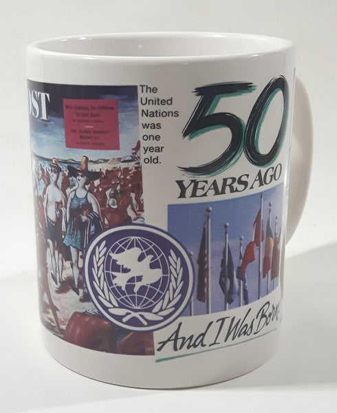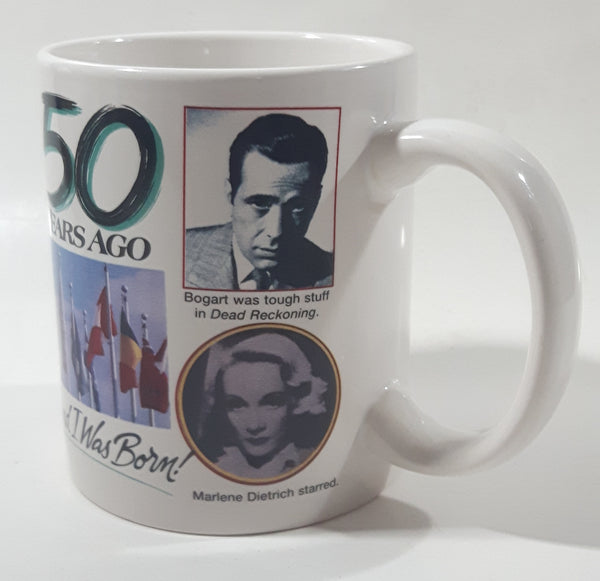 1996 Peacock Papers "50 Years Ago" And I Was Born Jackie Robinson United Nations Bogart Marletent Dietrich Truman GM Everglades Ceramic Coffee Mug Cup