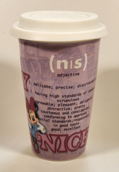 Disney Parks Minnie Mouse Daisy Duck Naughty Nice 6" Tall Ceramic Travel Coffee Mug Cup with Lid