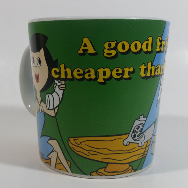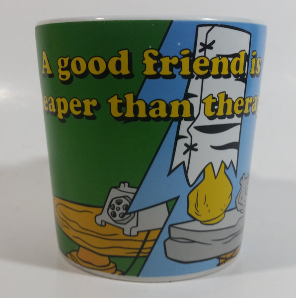 Hanna Barbera The Flintstones "A good friend is cheaper than therapy" Wilma Flintstone and Betty Rubble Ceramic Coffee Mug Cartoon Television Show Collectible