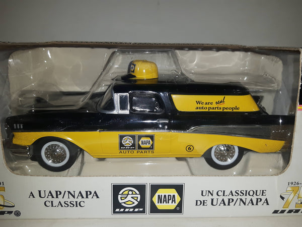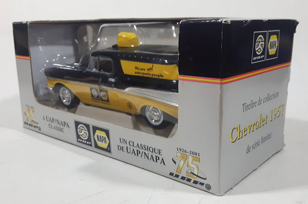 1926 to 2001 A UAP NAPA Classic 75th Anniversary Limited Edition 1957 Chevrolet Wagon Black and Yellow 1/24 Scale Die Cast Toy Car Vehicle Coin Bank New In Box