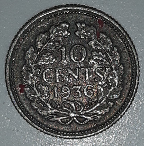 1936 Netherlands Wilhelmina 10 Cents Metal Coin