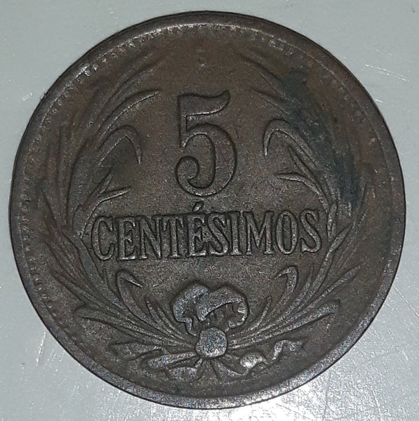 1944 Uruguay 5 Centesimos Copper Metal Coin