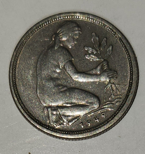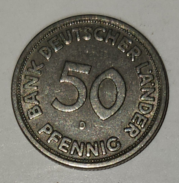 1949 West Germany Bank Deutscher Lander 50 Pfenning Metal Coin