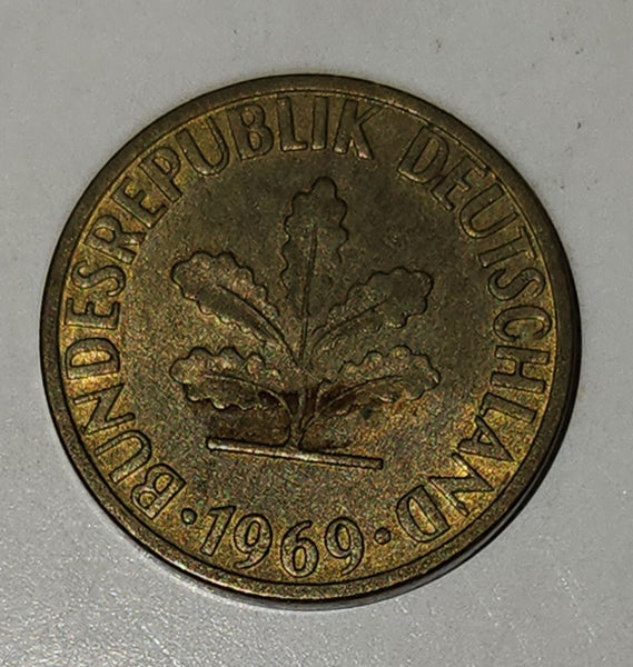 1969 Federal Republic of Germany 5 Pfenning Brass Steel Metal Coin