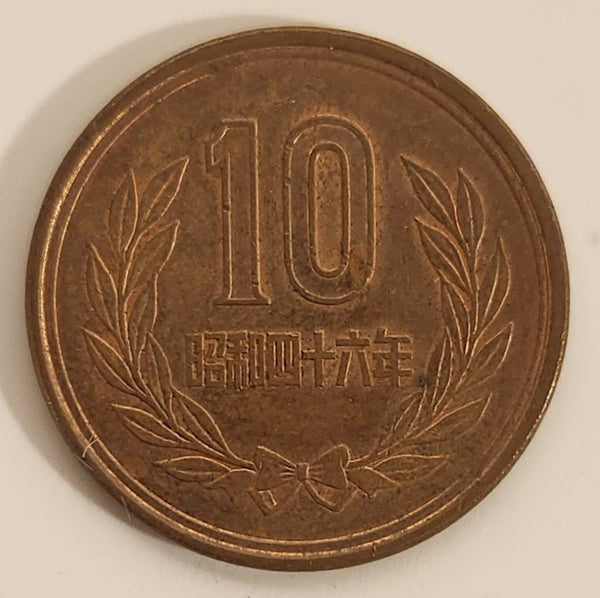1971 Japan 10 Yen Bronze Metal Coin Showa Year 46