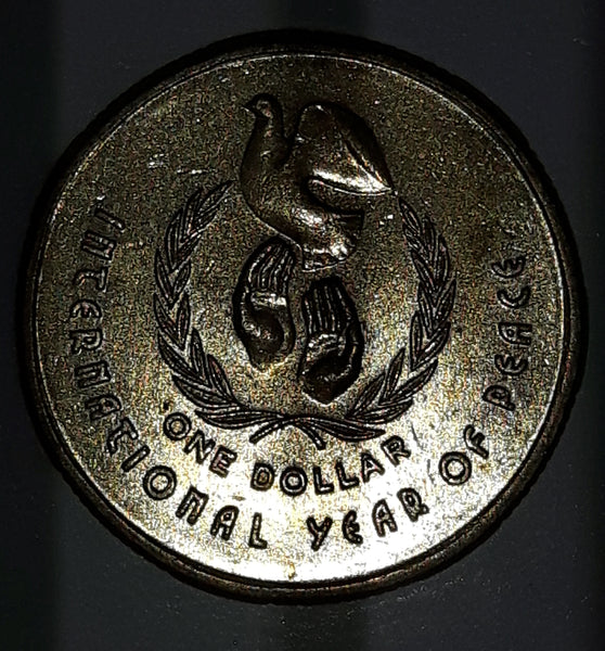 1986 Australia Queen Elizabeth II International Year Of Peace One Dollar Metal Coin