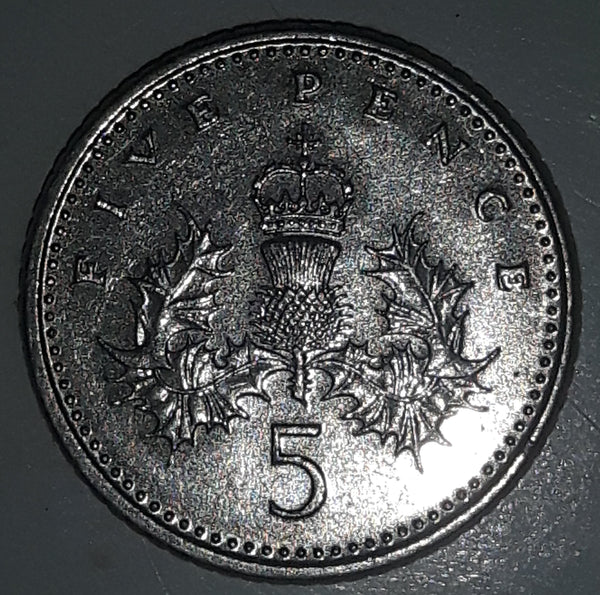 1990 UK Great Britain Five Pence 5 Queen Elizabeth II D.G. Reg F.D Metal Coin