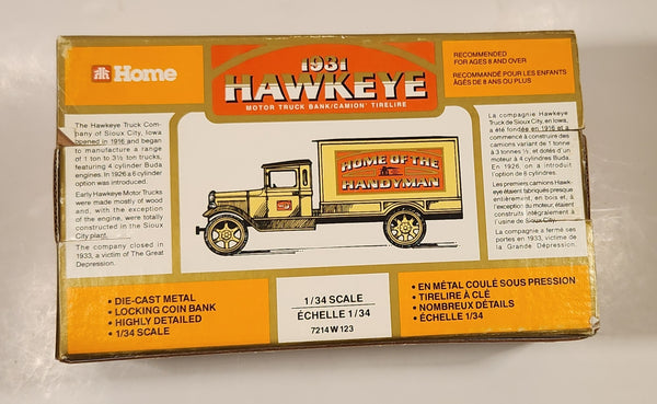 1991 ERTL Home Hardware 1931 Hawkeye Motor Truck 1/34 Scale Coin Bank New in Box 9th Limited Edition
