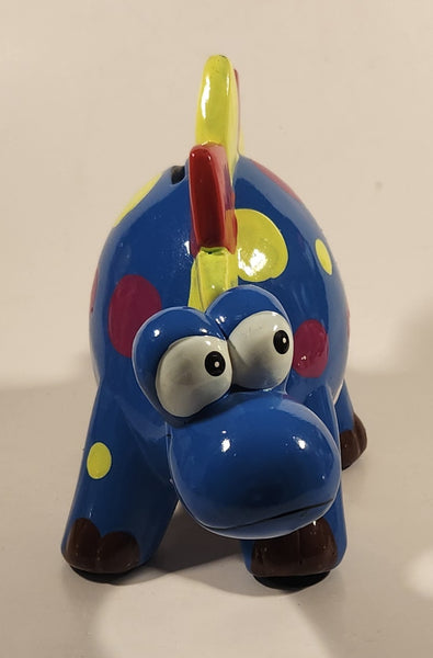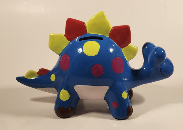 Blue Red Yellow Stegosaurus Dinosaur 9 1/2" Ceramic Coin Bank