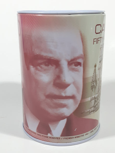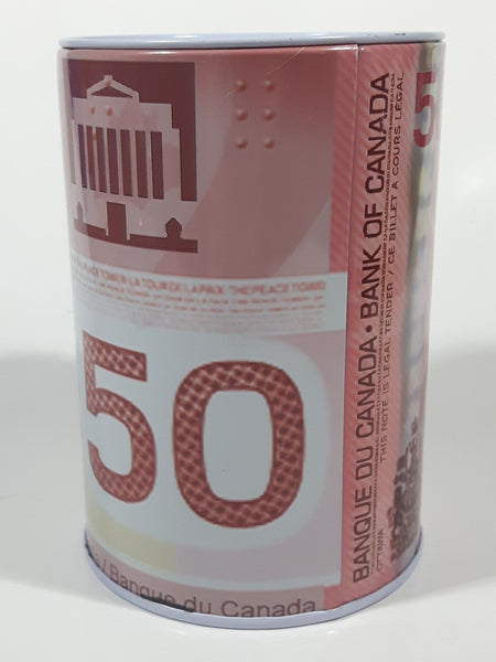 Canada $50 Dollar Bill 4 3/4" Tall Tin Metal Coin Bank