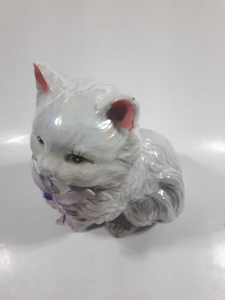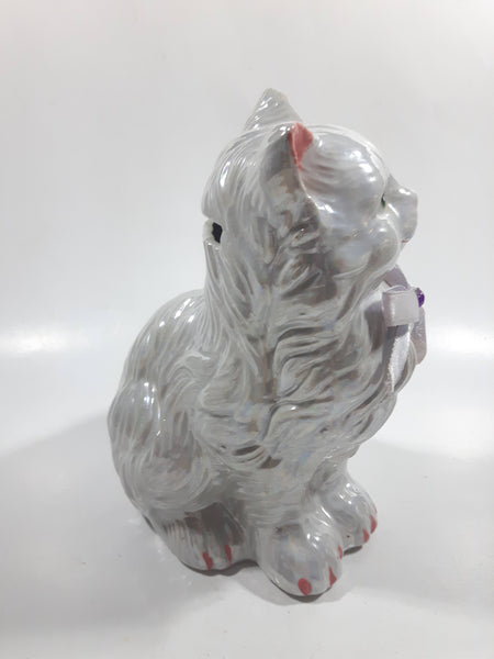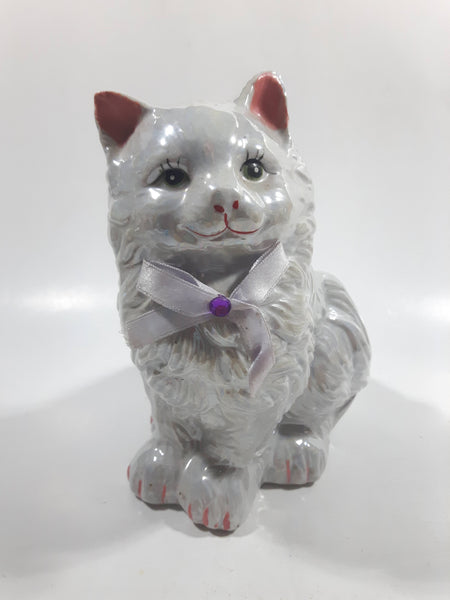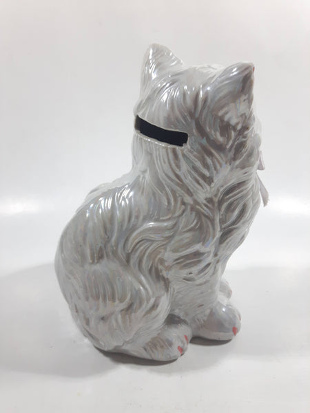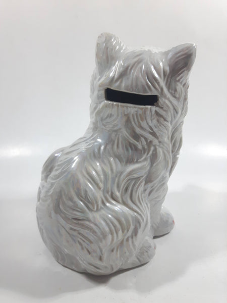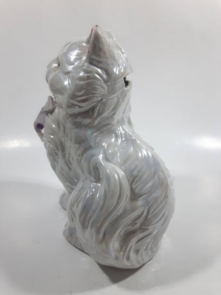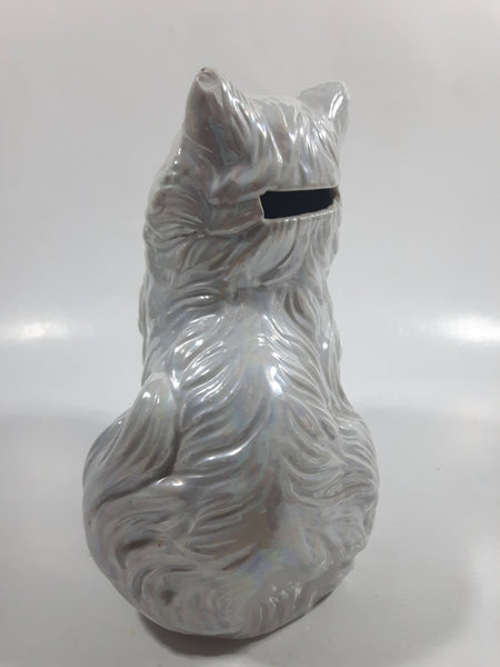 Cute Cat Hand Painted Mother of Pearl Iridescent Paint 6 1/2" Tall Ceramic Coin Bank