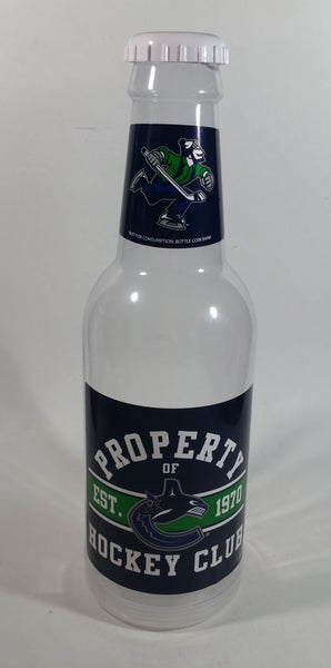 NHL Ice Hockey Vancouver Canucks 14" Tall Large Clear Plastic Bottle Shaped Coin Bank Sports Collectible