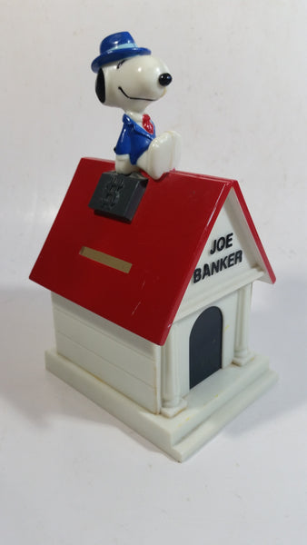 Vintage 1966 Peanuts Character Snoopy "Joe Banker" Dog House Shaped Plastic Coin Bank