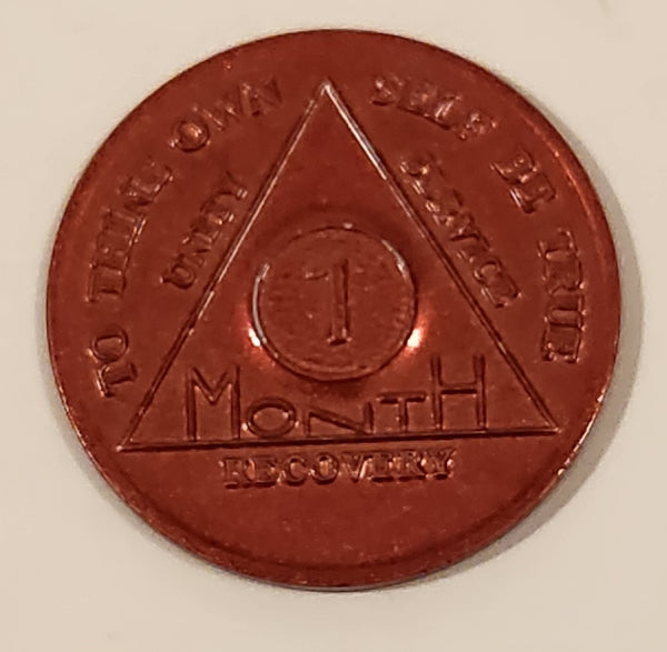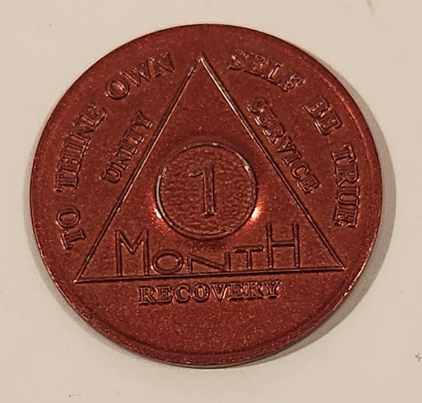 Vintage AA Alcoholic Anonymous To Thine Own Self Be True 1 Month Red Metal Recovery Token Chip