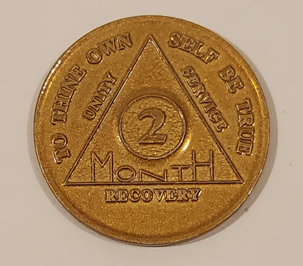 Vintage AA Alcoholics Anonymous To Thine Own Self Be True 2 Months Gold Tone Metal Recovery Token Chip