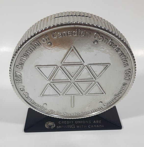 Vintage Astro 1867 - 1967 Centennial of Canadian Confederation Credit Unions Are Growing With Canada 5 5/8" Tall Coin Bank No Key