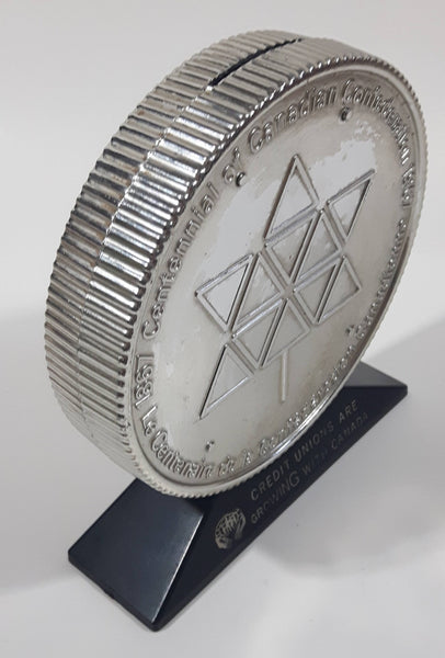Vintage Astro 1867 - 1967 Centennial of Canadian Confederation Credit Unions Are Growing With Canada 5 5/8" Tall Coin Bank No Key