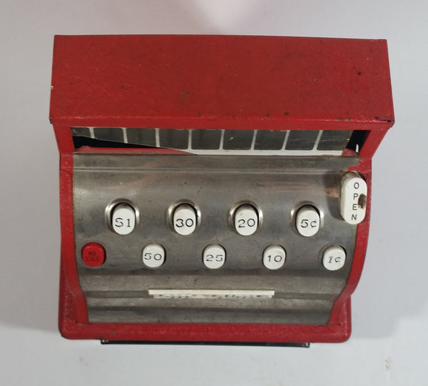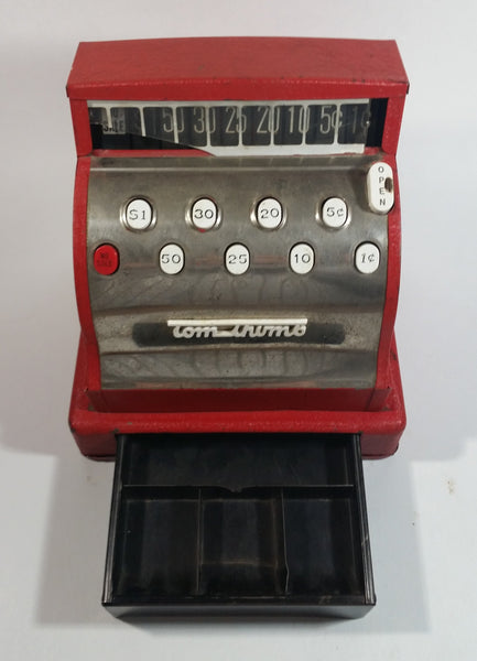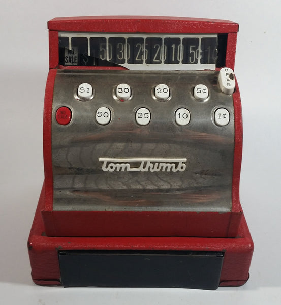 Vintage Western Stamping Company Tom Thumb Painted Red Metal Mechanical Cash Register Toy - Pat. No. 3045902