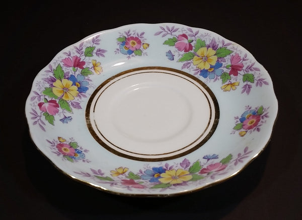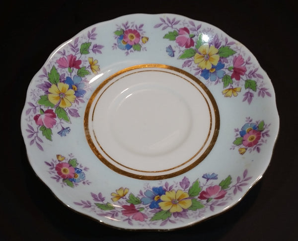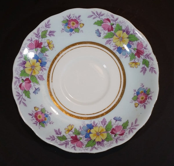 1939-1945 Colclough Bone China Longton England Baby Blue with Gold Trim Floral Pattern Teacup Saucer