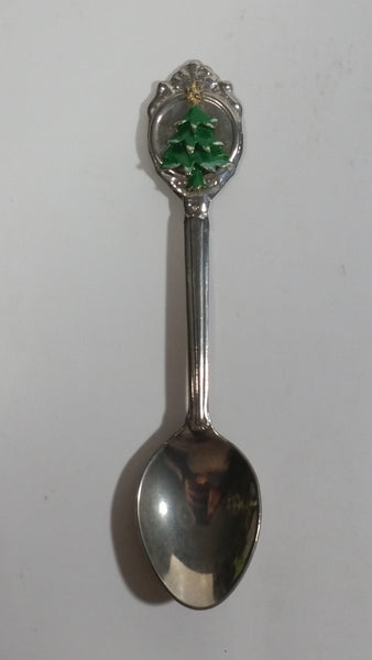 3D Green Christmas Tree with Gold Star Silver Plated Steel Metal Spoon