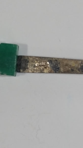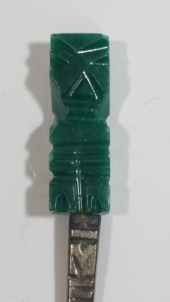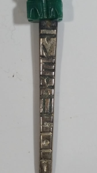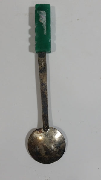 Green Jade Stone 4" Long Mexico Metal Spoon Souvenir Travel Collectible